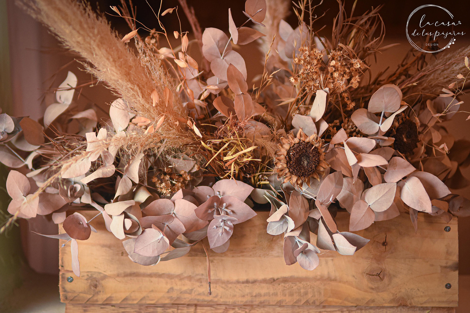 Cajones fabricados con maderas de palets óptimos para diversos usos + Combo de flores secas y follaje.