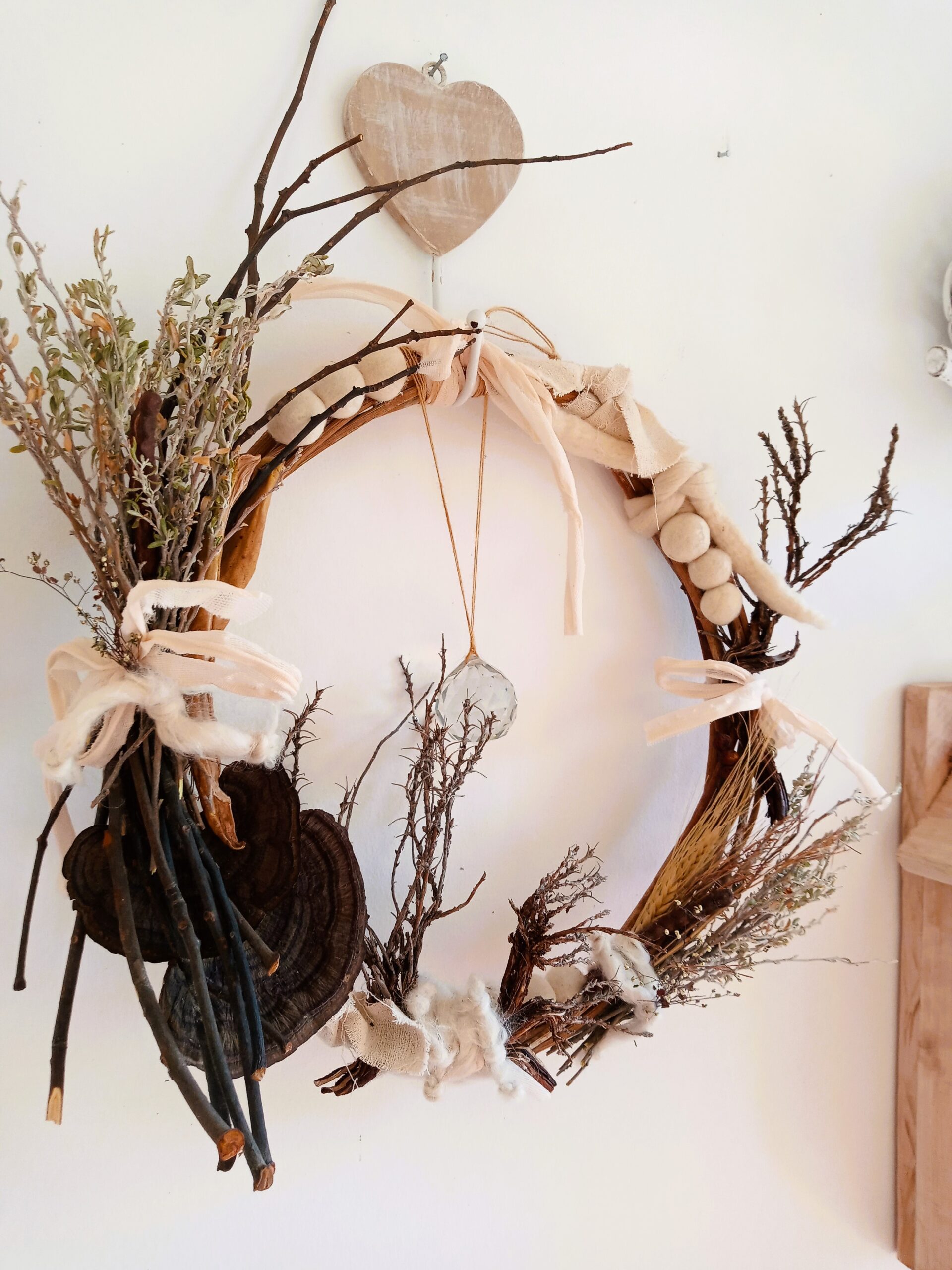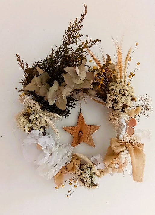 Coronas con mix de follaje y flores secas.